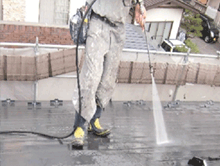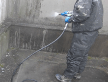 ペンキを塗る前に、高圧水洗で表面の汚れやホコリを洗い流します。